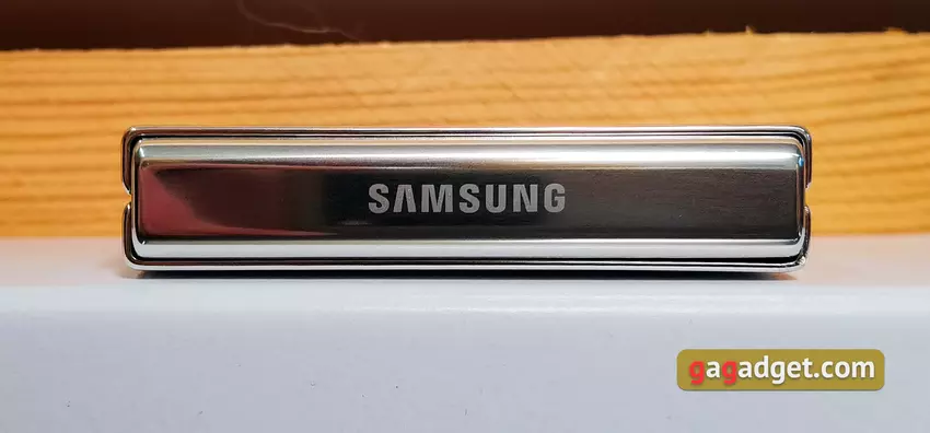 Er zijn geen fundamentele wijzigingen in het ontwerp van Samsung Galaxy Flip5 ten opzichte van Galaxy Flip4. Het is dezelfde opvouwbare clamshell die eruitziet als een kleine vierkante balk wanneer deze is opgevouwen, wat handig is om mee te nemen in bijna elke zak. En uitgevouwen ziet het eruit als een typische moderne smartphone met een groot scherm. Behalve dan de iets langwerpigere vorm. De randen zijn iets breder dan die van typische moderne vlaggenschepen. Hoewel dit bij opvouwbare smartphones nog steeds bezels zijn die minimaal boven het scherm uitsteken om het te beschermen. De camera aan de voorkant zit in het gebruikelijke ronde gat en de luidspreker van het oortje zit onder drie smalle sleuven boven het scherm. Alles is zoals gebruikelijk.