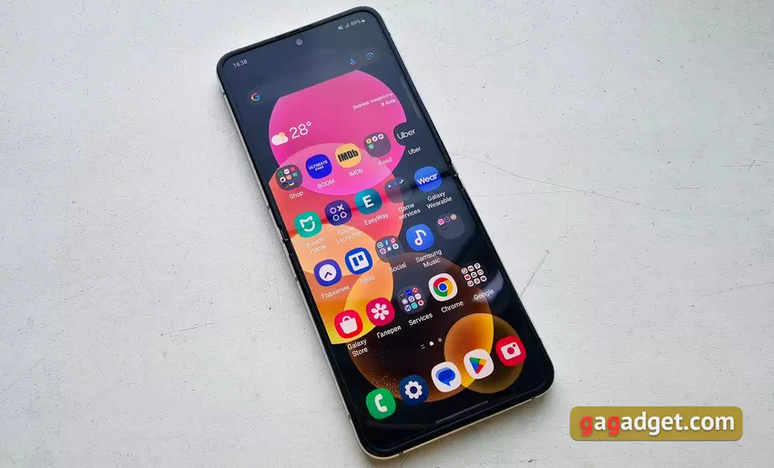 De smartphone draait op Android 13 met de eigen One UI 5.1.1 schil. Deze is al bekend van de Galaxy S23-lijn, met uitzondering van enkele extra functies voor flexibele en externe schermen, die we hierboven al hebben genoemd. Over het algemeen is de One UI schil van Samsung de afgelopen jaren erg goed bevallen door zijn snelheid, gemak en stabiliteit. Dit geldt ook voor de nieuwste opvouwbare smartphones van het bedrijf. De interface verschilt visueel nogal van pure Android. Maar dit geldt alleen voor de cosmetica. De hele logica van het werk is vertrouwd. Er zijn bureaubladen met widgets en applicaties en rasterinstellingen, een gordijn met schakelaars en een apart menu met alle applicaties die uitgeschakeld kunnen worden. Er is ook een eenvoudige modus met grote pictogrammen.