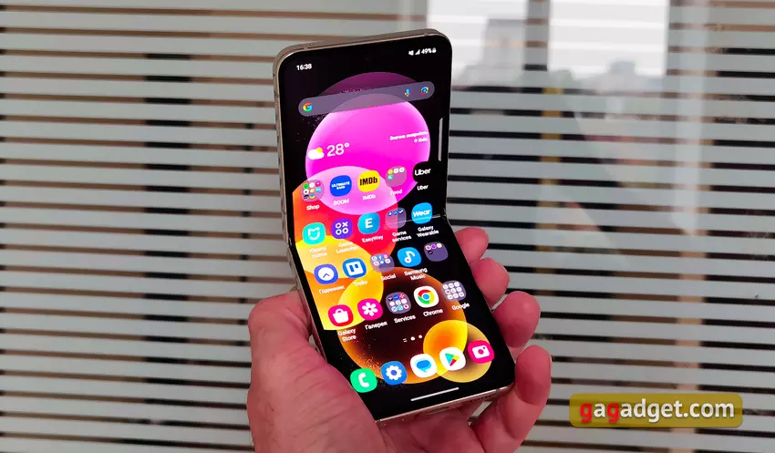 Ingeklapt is de smartphone dankzij het compacte formaat gemakkelijk mee te nemen in bijna elke broekzak. Maar het uitklappen van de Samsung Galaxy Flip5 is nog steeds niet erg handig, net als elke andere moderne opvouwbare smartphone met een flexibel display. Het is extreem moeilijk om het met één hand te doen zonder het interne display te beschadigen. Maar dankzij het vergrote externe display is het nu heel comfortabel om onderweg bepaalde handelingen te verrichten zonder de smartphone te hoeven openen.