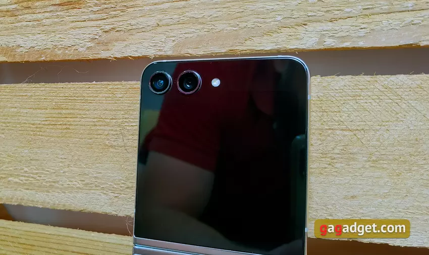 Technisch gezien is de cameraset van Samsung Galaxy Flip5 ongewijzigd ten opzichte van Galaxy Flip4. De externe camera bestaat dus uit twee modules. De belangrijkste is 12 megapixels met f/1.8 diafragma, 24 EVF, fysieke grootte 1/1.76", pixelgrootte 1.8µm. Er is een autofocus met fasedetectie Dual Pixel PDAF en optische stabilisatie. Ultragroothoek: 12 MP, f/2.2, 123°, zonder autofocus. Voorkant: 10 MP, f/2.4. Dus als er een verschil in beeldkwaliteit is, dan is dat alleen te danken aan de verfijnde verwerkingsalgoritmes.