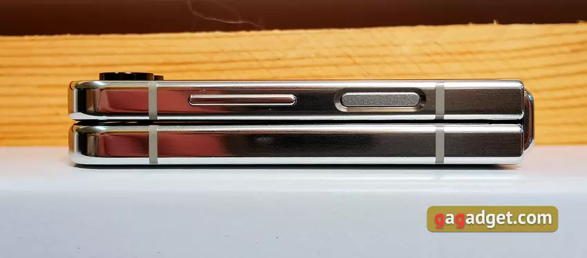 Het frame is volledig gemaakt van zogenaamd gepantserd aluminium. Er wordt beweerd dat het beter bestand is tegen vallen en krassen. Er zijn plastic inzetstukken rondom voor een stabiele werking van de antennes. Het nieuwe Flex Hinge scharnier en de traanvormige vouw van het scherm in opgevouwen toestand hebben het mogelijk gemaakt om de ruimte tussen de twee helften van de smartphone te verwijderen. Dit heeft niet alleen esthetische maar ook praktische voordelen. Er komt aanzienlijk minder stof en vuil binnen, wat de kans op schade aan het scherm verkleint. De volume- en aan/uit-knoppen met de vingerscanner zitten op dezelfde plek als voorheen. Ze zitten dus iets hoger dan op conventionele smartphones en moeten even wennen.