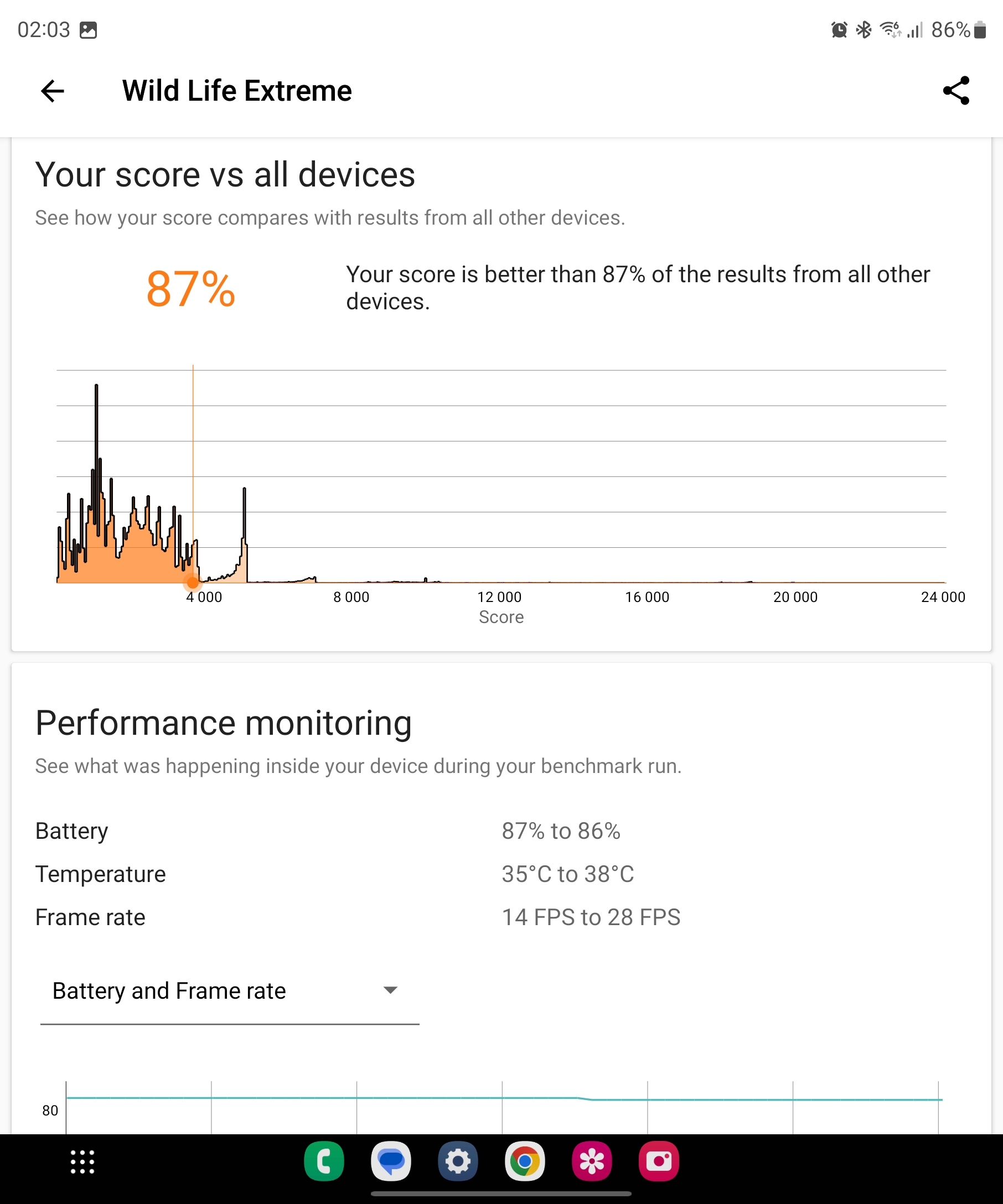 Er wordt beweerd dat er een verdampingskamer wordt gebruikt om de processor te koelen. Bij dagelijks gebruik en tijdens het gamen werkt de smartphone stabiel en wordt hij bijna nooit heet. De behuizing kan een beetje warm worden na 15 minuten spelen van iets zwaars als Diablo Immortal. Uit de stresstest blijkt dat de processor bij langdurige maximale belasting toch iets oververhit raakt en de prestaties tot 79% kunnen dalen.