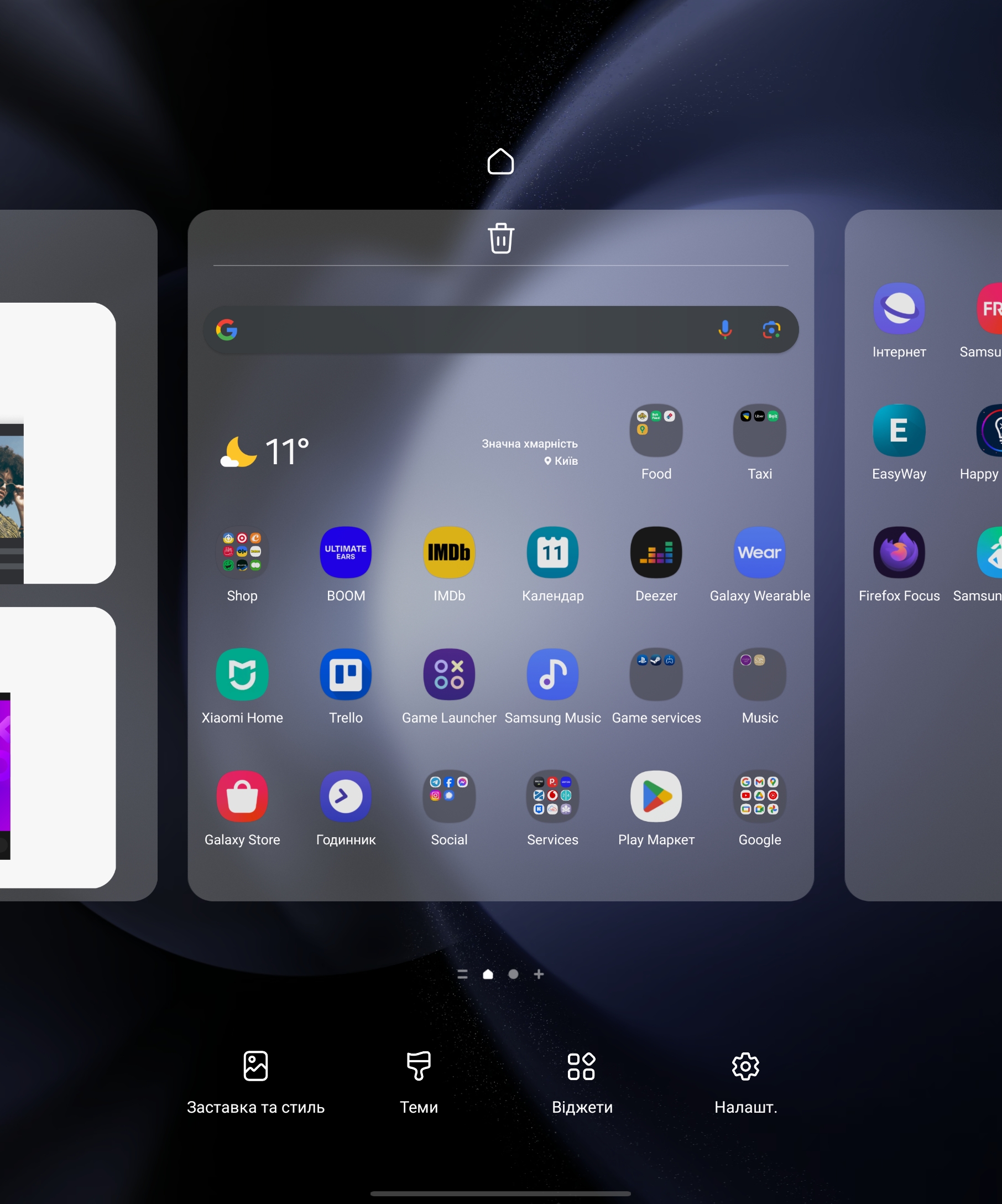 Toepassingen in de app manager zien eruit als bekende kaarten. Je kunt applicaties openen in een kleiner venster, ze doorschijnend maken of ze minimaliseren tot een pictogram. Hier zijn ook gebaren voor. Je kunt een app snel in split-screen modus zetten door met twee vingers vanaf de rechter- of linkerrand van het scherm te vegen. En je kunt een venster openen door vanaf de hoek van het scherm te vegen.