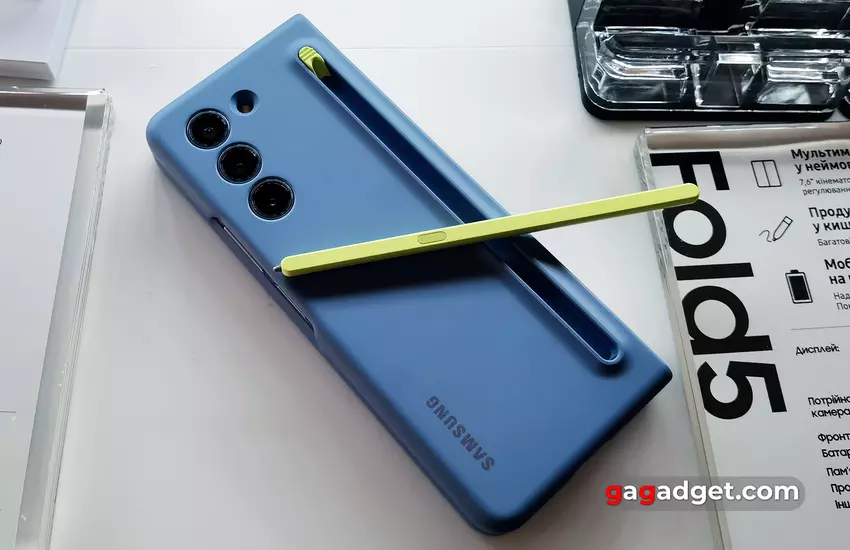 Het interne scherm van de Samsung Galaxy Fold5 ondersteunt de S Pen. Helaas hebben we de pen niet ontvangen voor een review, dus we vermelden alleen dit feit en een foto van de bijbehorende S Pen case: