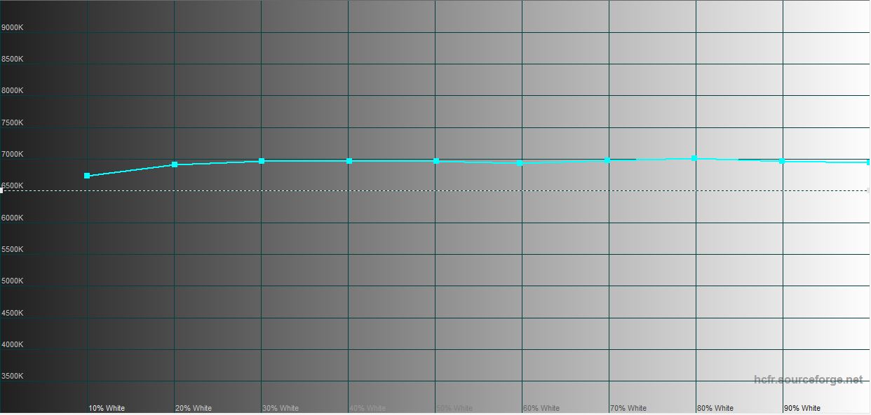 In de "natuurlijke" modus is de helderheid iets lager: 733,307 cd/m2, het kleurengamma ligt dicht bij sRGB, en de kleurnauwkeurigheid is ook iets slechter.