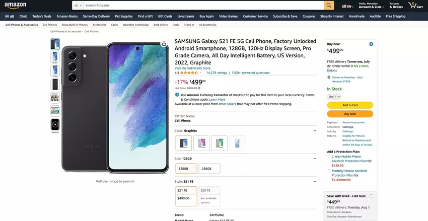 - Samsung Galaxy S21 FE, 128GB - check price on amazon.