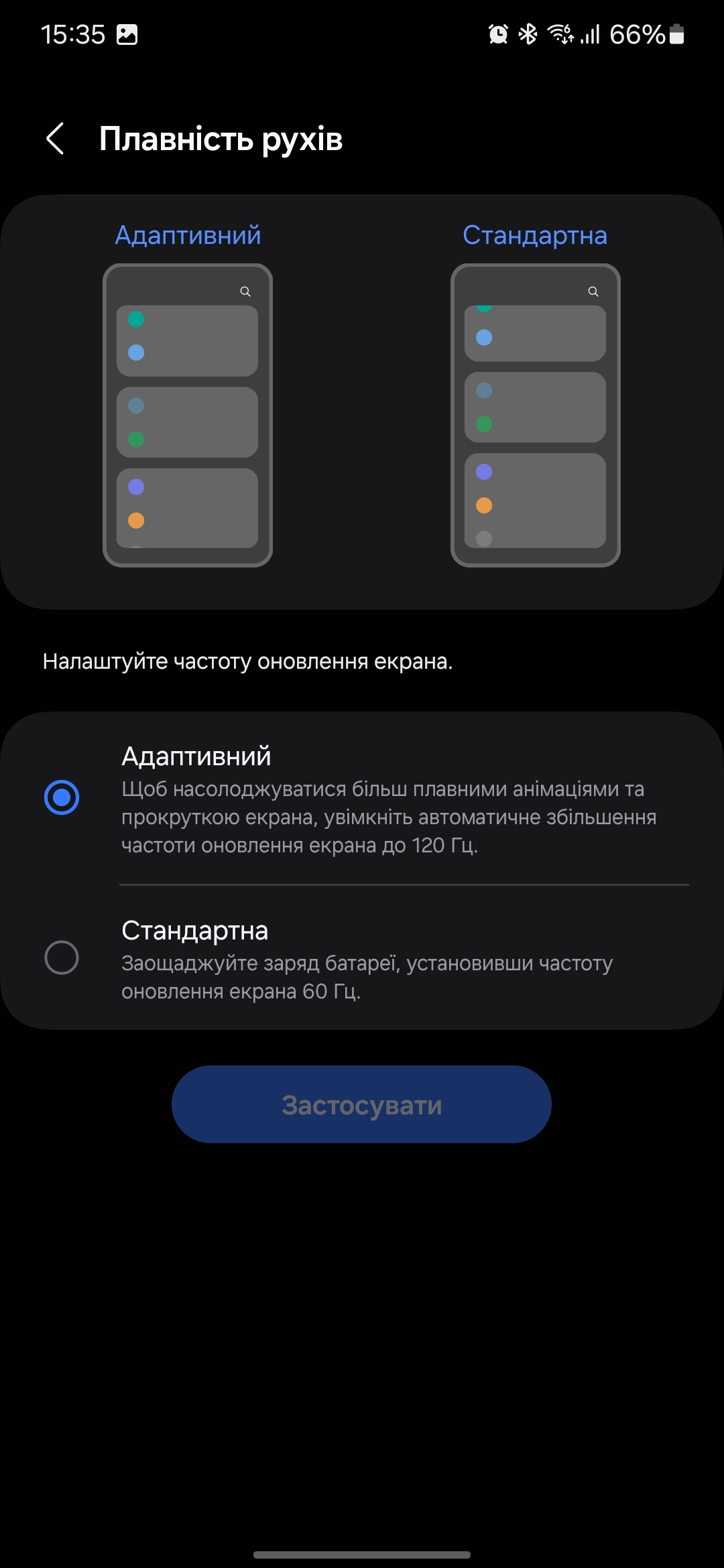 De Samsung Galaxy S23 FE is uitgerust met een plat 6,4-inch AMOLED scherm.De resolutie is 2340x1080 (19,5:9 beeldverhouding), en de pixeldichtheid is ongeveer 403 ppi. De fabrikant belooft een piekhelderheid van 1450 cd/m² en er is ondersteuning voor HDR10+. De maximale vernieuwingsfrequentie is 120 Hz en de gebruiker kan kiezen uit twee modi. 60 Hz en adaptieve 60-120 Hz. De rest van de instellingen zijn vrij standaard voor Samsung smartphones: helderheid, donkere en lichte thema's, interface en tekstschaal, oogcomfort (automatische aanpassing van de kleurtemperatuur afhankelijk van het omgevingslicht) en twee modi voor kleurweergave met aanpassing van de kleurtemperatuur.