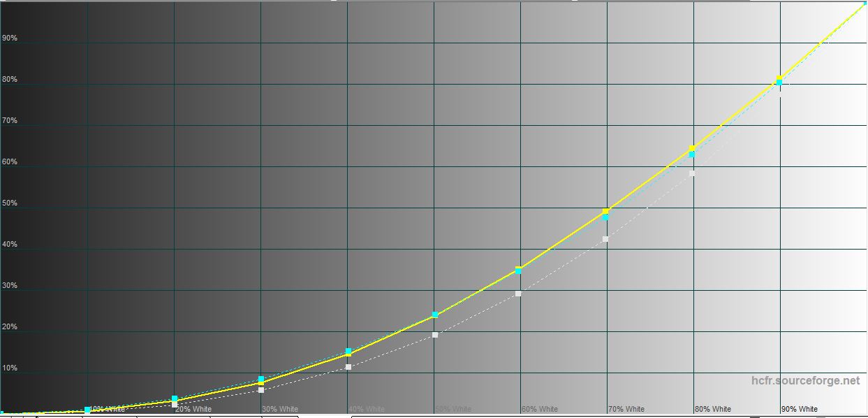 In de modus "Natuurlijk" ligt het kleurengamma dicht bij (maar niet precies hetzelfde) sRGB en is de maximale helderheid iets lager: 471.004 cd/m2. Andere indicatoren liggen dicht bij de Bright mode.