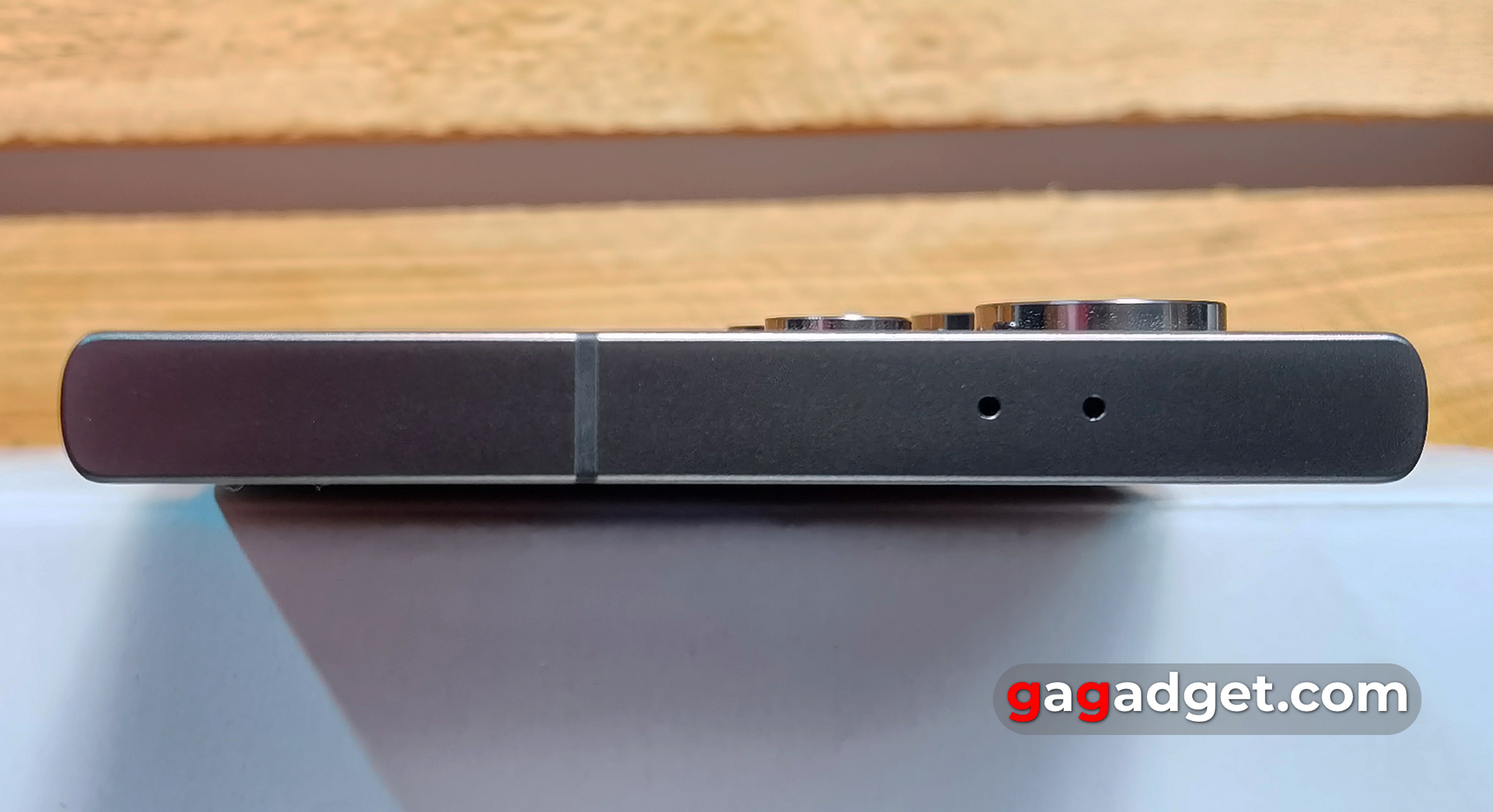 Het frame van dit jaar is gemaakt van titanium. Het is sterker dan aluminium en voelt een beetje anders aan. Titanium heeft een mooie matte textuur. Er zijn traditionele plastic inzetstukken rondom voor een stabiele werking van draadloze interfaces. De zijranden hebben een licht afgeronde vorm, wat een positief effect heeft op het gebruiksgemak van de smartphone. En dit is vooral belangrijk bij dergelijke afmetingen.