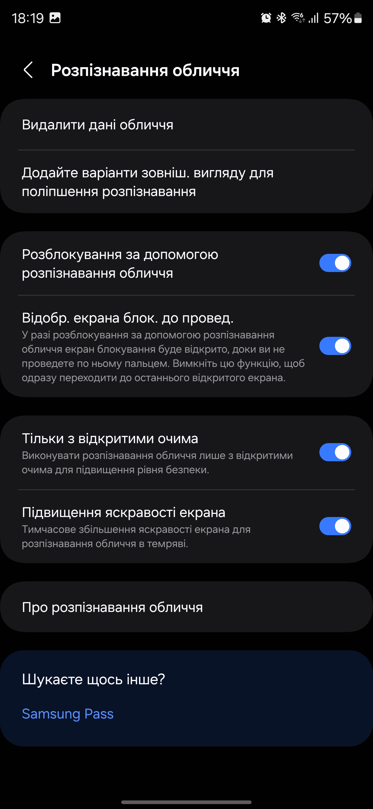 Om de eigenaar te identificeren, gebruikt Samsung Galaxy S24 Ultra een typische moderne set van vingerafdrukscanner en gezichtsherkenning met behulp van de frontcamera. Met gezichtsherkenning is alles typisch. Het werkt snel bij voldoende licht. Extra instellingen zijn onder andere het voorkomen van herkenning wanneer de ogen gesloten zijn, het verhogen van de helderheid van het scherm bij weinig licht en de mogelijkheid om extra gezichtskenmerken te registreren voor snellere herkenning. Een paar woorden over de scanner zijn de moeite waard. Net als in de vorige topsmartphones van het bedrijf in de afgelopen jaren, wordt de ultrasone vingerafdrukscanner gebruikt onder hetscherm. Het verschil met de optische scanner is dat deze ook werkt met natte vingers. Het lijkt erop dat Samsung eindelijk de software heeft afgerond, want het is de snelste in-display scanner die ik ooit heb gebruikt. Qua snelheid zit het op hetzelfde niveau als klassieke capacitieve scanners.