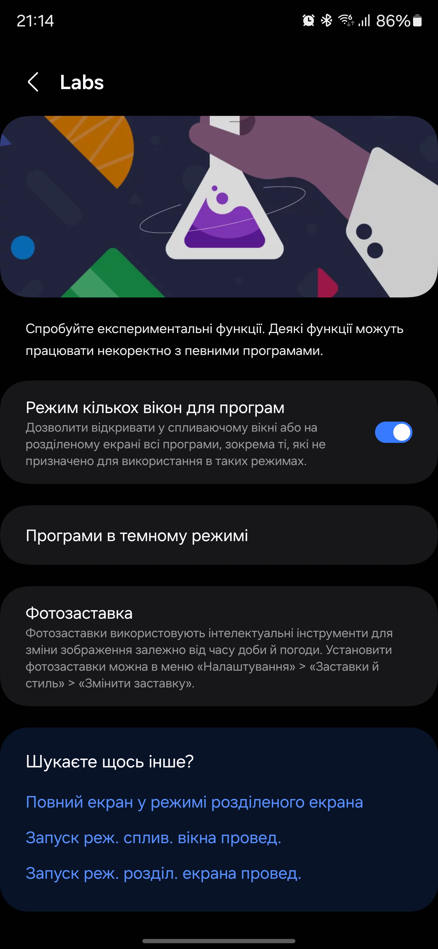 De functionele applicatiemanager is bekend van eerdere Samsung-modellen. Een standaard horizontale kaartencarrousel met de mogelijkheid om alle applicaties te sluiten, over te schakelen naar de gesplitste schermmodus en applicaties in een venster te starten.