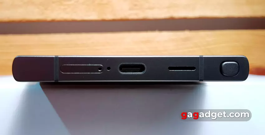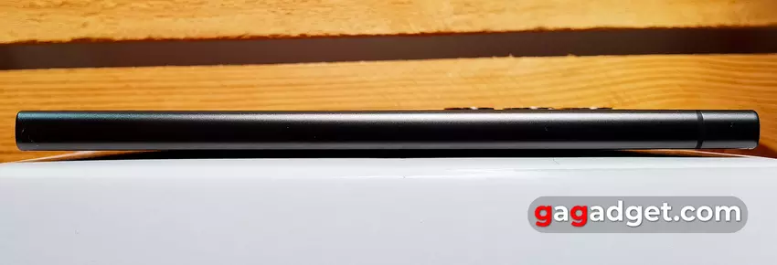 Het frame van dit jaar is gemaakt van titanium. Het is sterker dan aluminium en voelt een beetje anders aan. Titanium heeft een mooie matte textuur. Er zijn traditionele plastic inzetstukken rondom voor een stabiele werking van draadloze interfaces. De zijranden hebben een licht afgeronde vorm, wat een positief effect heeft op het gebruiksgemak van de smartphone. En dit is vooral belangrijk bij dergelijke afmetingen.