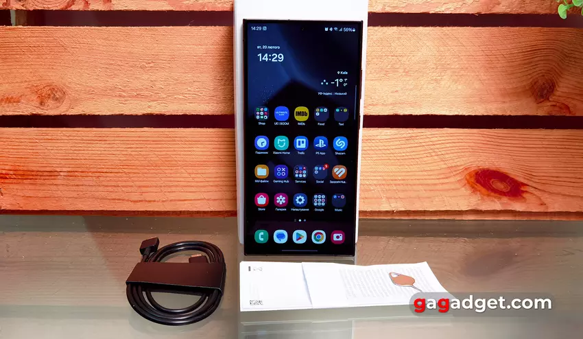 Op het eerste gezicht zijn het uiterlijk en het ontwerp vrijwel identiek aan de Galaxy S23 Ultra van vorig jaar, alles is vrij vertrouwd. Rechthoekige vorm met rechte hoeken, minimale randen rond de omtrek van het scherm en een camera in een klein rond gat. Maar er zijn nog steeds enkele verschillen, en die zijn behoorlijk significant. Het display heeft iets andere, langwerpigere proporties, waar we later dieper op in zullen gaan. Het scherm en de achterkant worden beschermd door een nieuw glas: Corning Gorilla Armour. Het is natuurlijk sterker dan het Corning Gorilla Glass Victus 2 van vorig jaar en beter bestand tegen krassen en vallen. Maar een andere eigenschap van het nieuwe glas is dat het veel minder schittert. Tenminste, dat beweert Samsung. Er is geen manier om het te vergelijken met het vorige model, dus we zullen moeten vertrouwen op de marketing van het bedrijf. Een ander belangrijk verschil is dat Samsung heeft besloten om het scherm helemaal plat te maken. Veel gebruikers zullen deze stap zeker positief beoordelen.