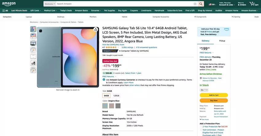 Geweldige aanbieding!!! Samsung Galaxy Tab S6 Lite is verkrijgbaar op Amazon met een korting tot $210