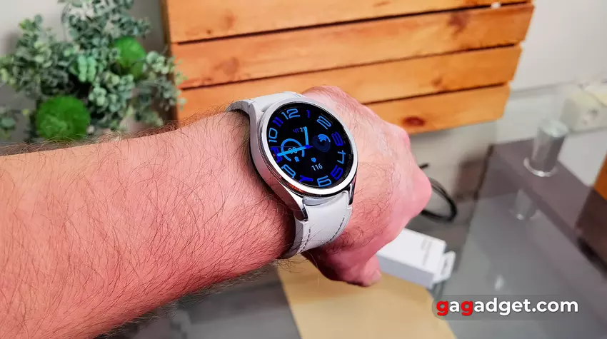 Samsung Galaxy Watch6 Classic heeft een vernieuwd hardware platform. In plaats van de Exynos W920 wordt de nieuwe Exynos W930 processor gebruikt. Deze is ook gemaakt op een 5nm procestechnologie en bevat 2 Cortex-A55 kernen die werken op een hogere frequentie van 1,4 GHz in vergelijking met het vorige model, en maakt ook gebruik van productievere graphics.Mali-G68 MP2. De hoeveelheid RAM is toegenomen van 1,5 naar 2 GB. Het platform zou in totaal 18% sneller zijn. Er is nog 16 GB intern geheugen beschikbaar. Naast voorgeïnstalleerde applicaties kun je er ook afspeellijsten voor sport mee downloaden. Voor mijn gevoel is er geen significant snelheidsverschil met de vorige generatie. Dit is niet verwonderlijk: de prestaties zijn verbeterd, maar de resolutie is ook toegenomen. Samsung Galaxy Watch6 Classic is uitgerust met alle noodzakelijke draadloze interfaces: dual-band Wi-Fi a/b/g/n, Bluetooth 5.3. Om de locatie te bepalen en routes op te nemen is er GPS, GLONASS, GALILEO en BDS. Er is een NFC-module en ondersteuning voor Google Pay. Werken met eSIM wordt ondersteund voor offline gebruik zonder smartphone. Het ondersteunt spraakoproepen en kan advies geven tijdens trainingen met behulp van een externe luidspreker.