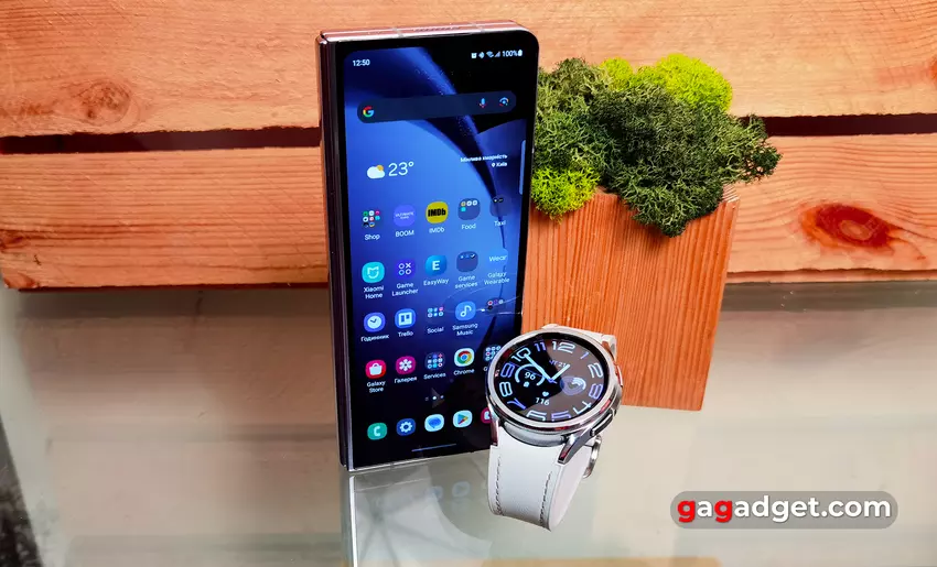 Om volledig te kunnen communiceren met de Samsung Galaxy Watch6 Classic, moet je maar liefst drie applicaties gebruiken. Galaxy Wearable is een algemene applicatie voor horloges, koptelefoons en andere accessoires van het bedrijf. Het bevat alle basisinstellingen: watchfaces, widgets, apps, meldingen, updates: