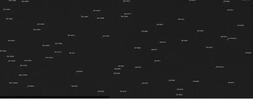 Psyche is uitgerust met twee multispectrale camera's om mineralen en metalen op de asteroïde te identificeren. De 68 foto's zijn gemaakt om de instrumenten van het interplanetaire station te kalibreren en de prestaties ervan te controleren. Hieronder zie je het sterrenveld in het sterrenbeeld Vissen.