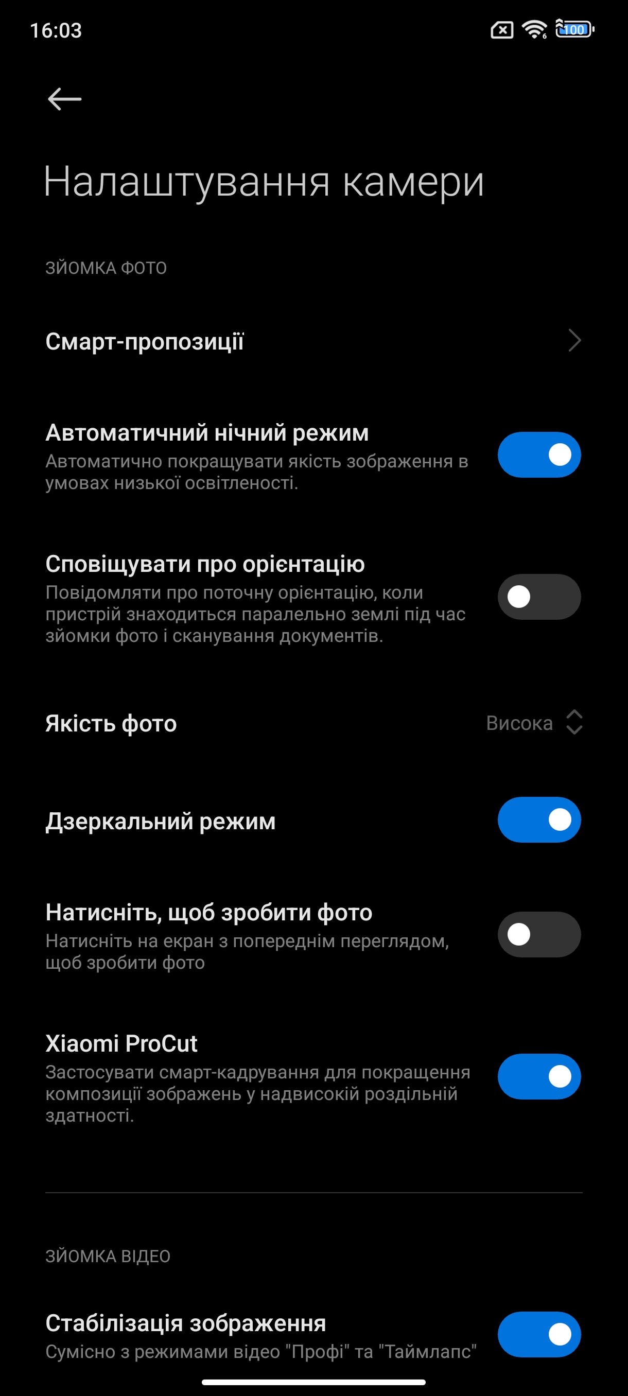 De camera-app heeft een zeer gebruiksvriendelijke en intuïtieve interface. Alle belangrijkste instellingen zijn beschikbaar op het zoekerscherm en extra instellingen staan in het uitklapmenu. De modi worden gewisseld met de gebruikelijke swipes, en extra modi staan in een aparte sectie.